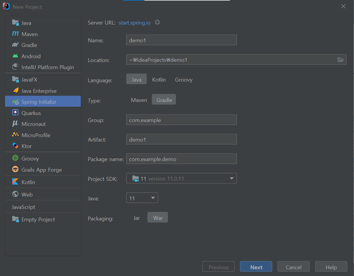 JDK 버전 : JDK 11