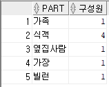 | COUNT(속성명) | 그룹별 튜플 수를 구함 |