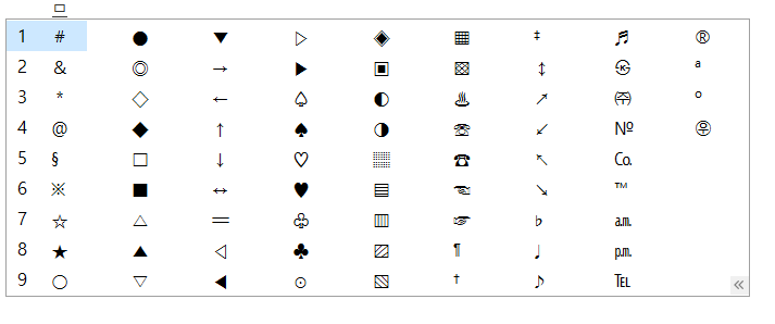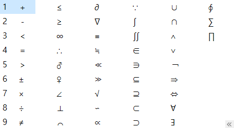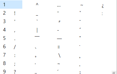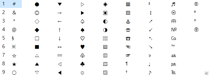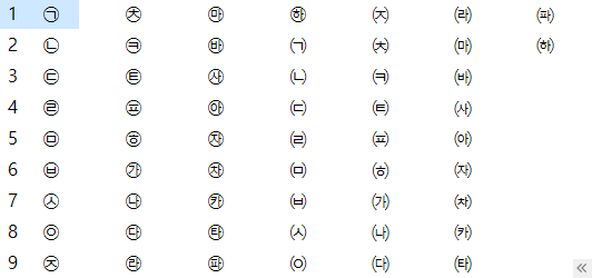 ㄱ 부터 ㅎ은 물론 ㄲ,ㄸ,ㅃ,ㅆ + 한자에도 대응하는 특수문자들을 사용하고 있습니다.