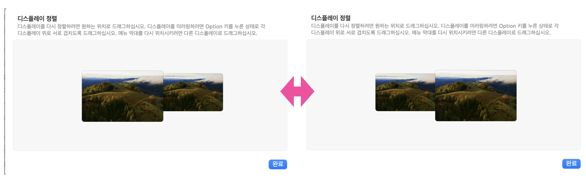 정렬까지 모두 마쳤다면 맥북의 사이드카 보조 화면으로 아이패드를 설정하는 것이 모두 완료되었습니다.