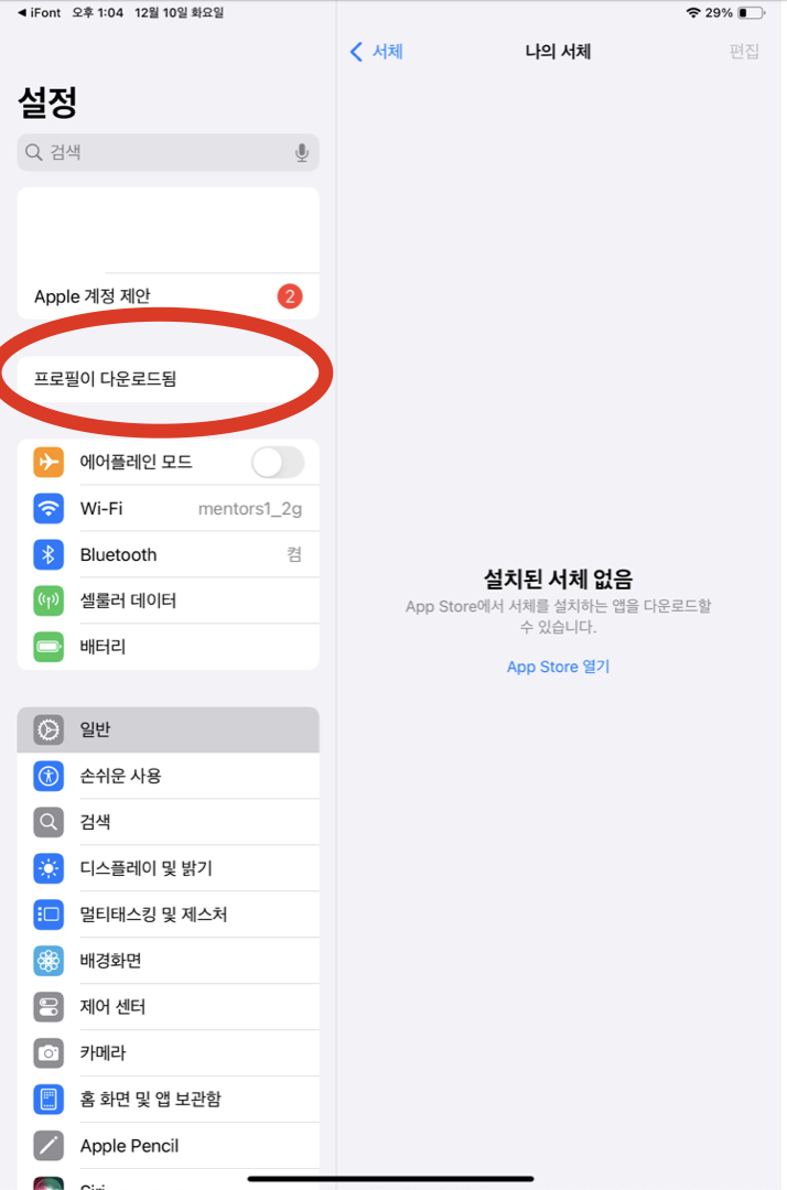 - 설정 앱으로 이동하여 '프로파일 다운로드'를 승인합니다.