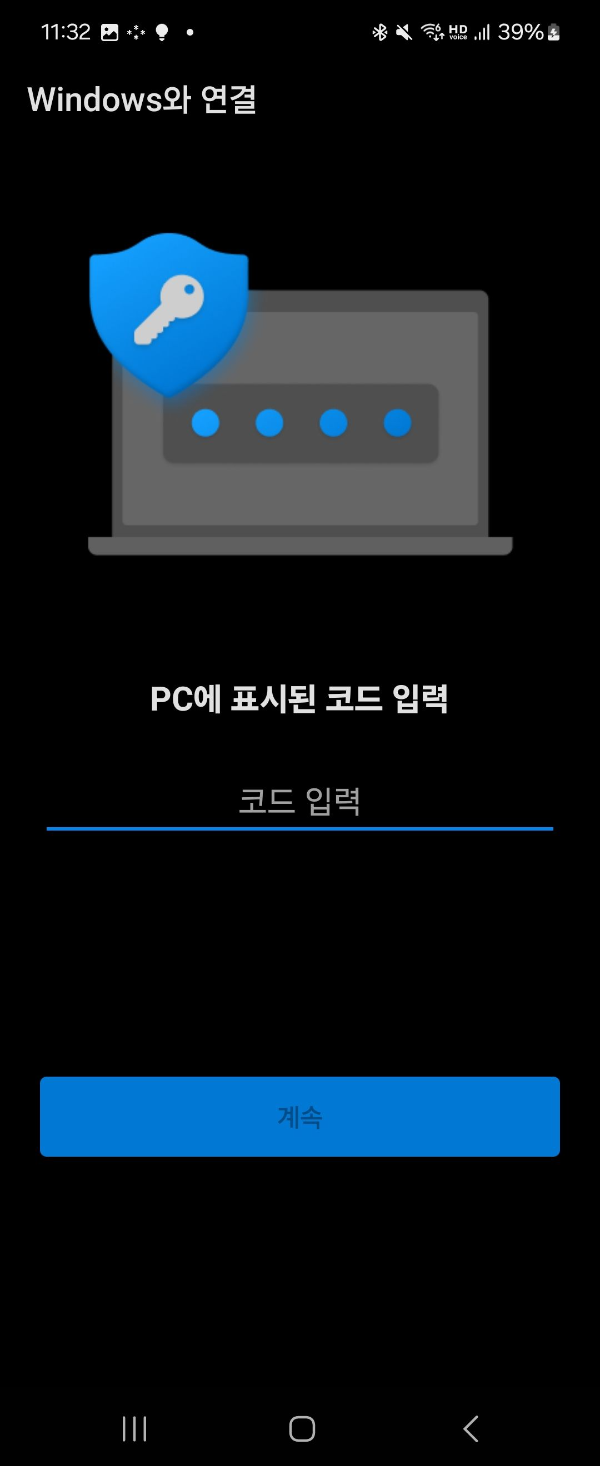 - PC의 계정에 로그인한 후 PC에 표시된 코드를 입력합니다.