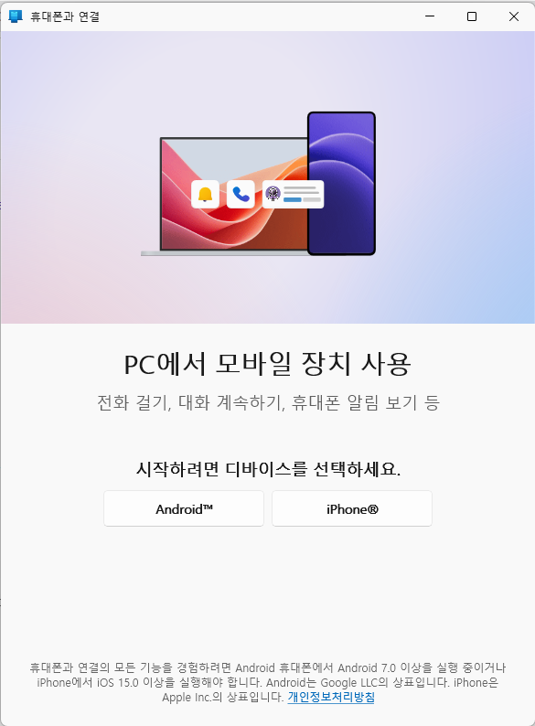 - QR 코드 스캔으로 연결: PC의 Phone Link 앱에서 생성된 QR 코드를 스마트폰으로 스캔