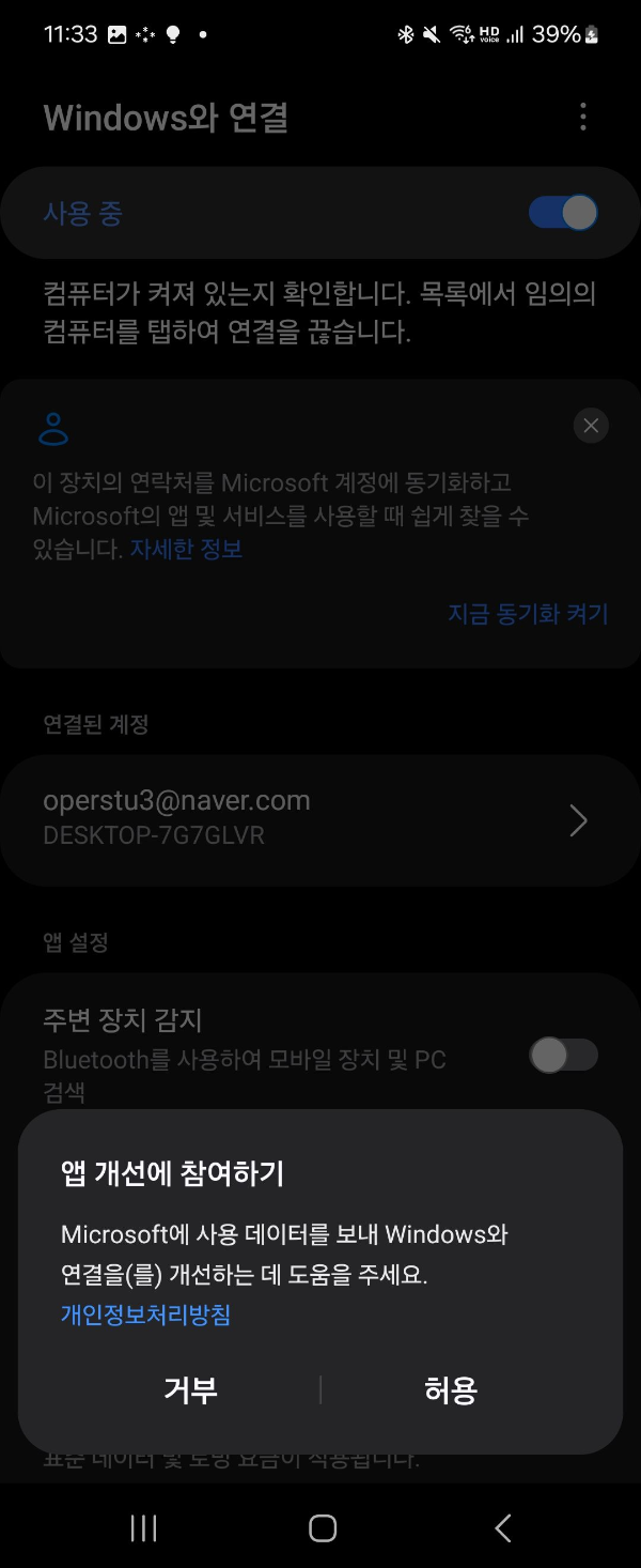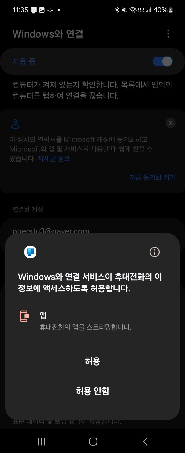 - 스마트폰 설정으로 이동: 기기 간 연결 > 'Window와 연결' 선택