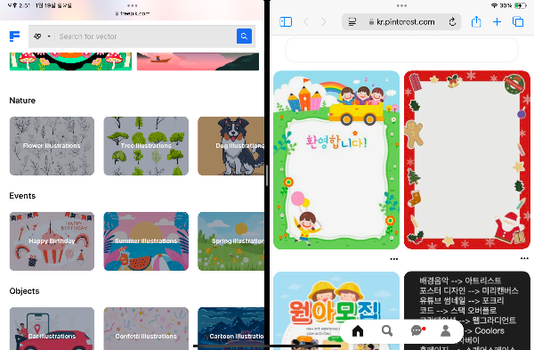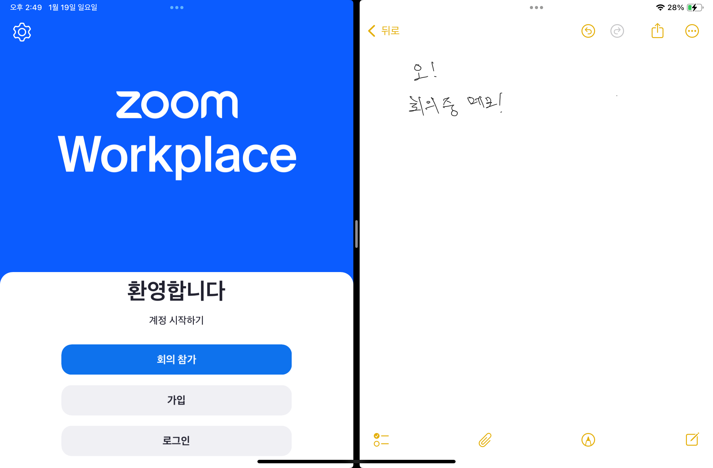 - 한 화면에서 두 개의 앱을 나란히 열 수 있음.