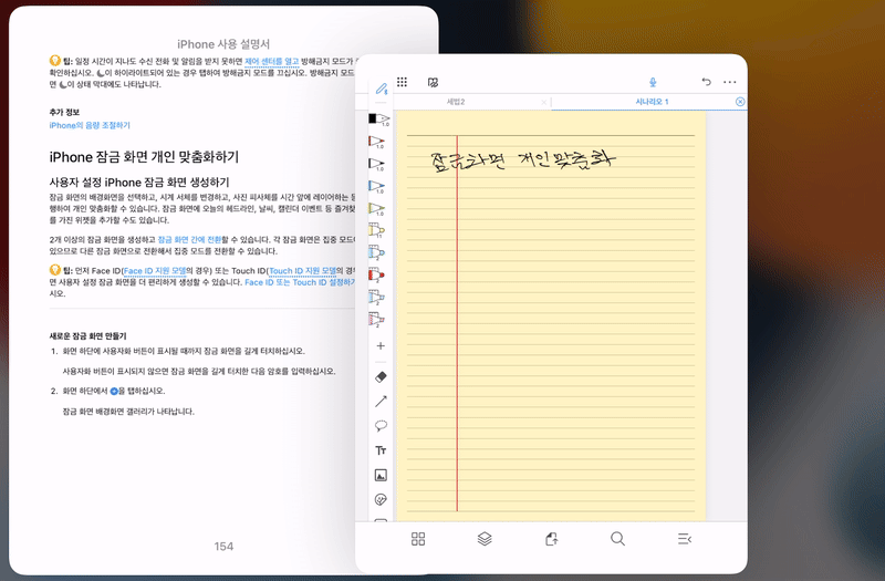 - Slide Over 병행 사용: Split View와 함께 Slide Over를 사용해 세 번째 앱 추가.