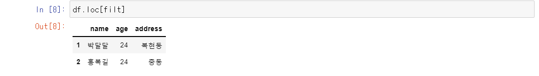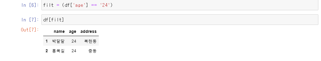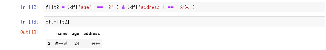 filt2 = (df['age'] == '24') & (df['address'] == '중동')