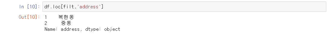 df.loc[filt,'address']를 작성해주시면 됩니다.
