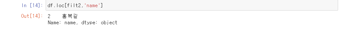 df.loc[filt]를 입력하면 아까 df[filt]를 입력했을 때와 동일한 결과값이 나옵니다.