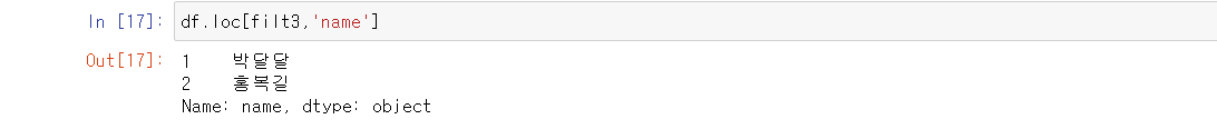 (4) 그리고 df에서 'filt'조건에 맞는 값들을 찾아주기 위해 df[filt]를 실행해 줍니다.