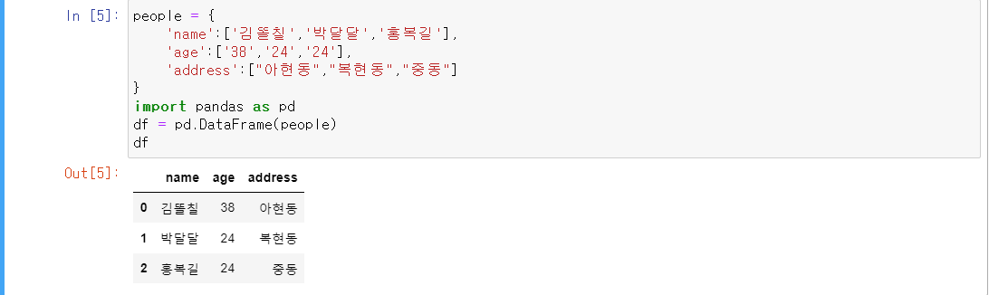 우선 people를 pandas를 사용하여 DataFrame을 짜 줍니다.