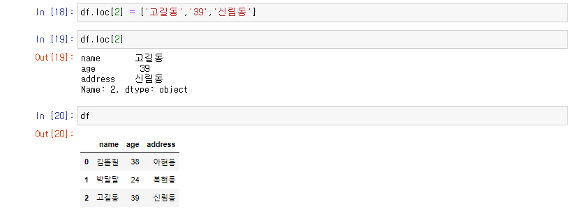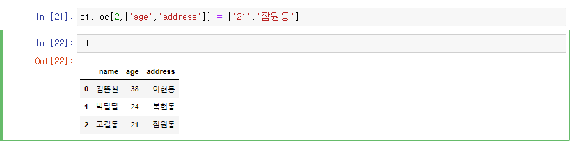 df.loc[2] list 안의 값들을 바꾸면 됩니다.