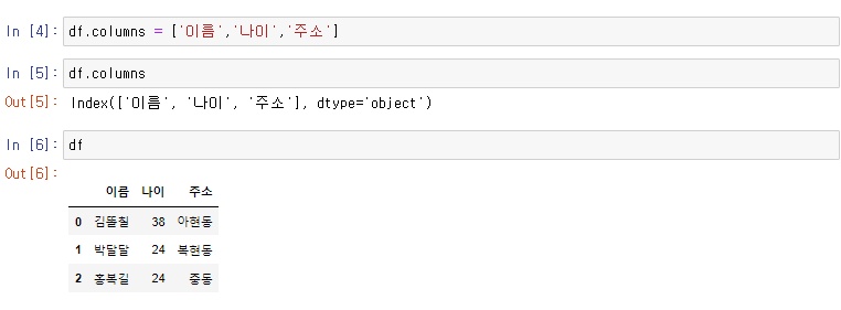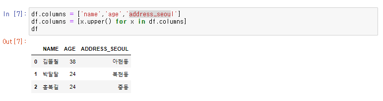 잡아온 columns들의 내용을 바꿔주겠습니다. 형식은 df.columns 안에 들어 있듯이 같은 형태로 합니다.
