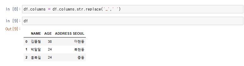 이럴때는 df.columns.dtr.replace를 사용해주면 됩니다.