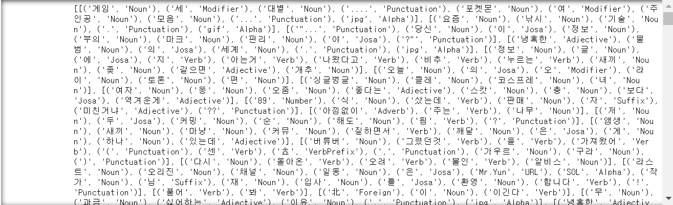 이 word에는 Okt로 분할한 형태소와 그 태그가 담긴 자료('단어','tag')가 담길 것입니다.