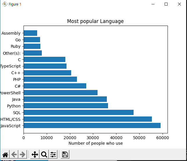 기존은 세로 바 그래프를 만들기 위해서 plt.bar()를 사용했다면 가로로 눕히기 위해서는 plt.barh()를 사용해 주시면 됩니다.