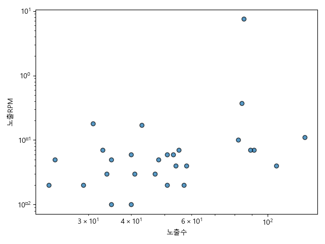 저의 x는 노출수, y는 노출rpm으로 지정했습니다.